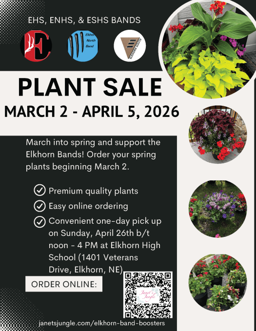 The 6th Annual Elkhorn High School Bands Plant Sale Open Now through April 5th.